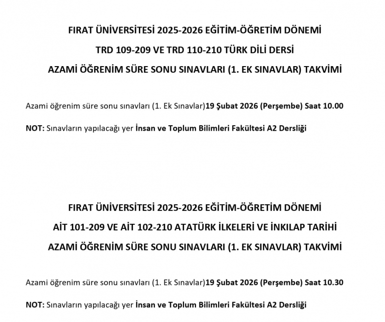 2025-2026 Güz Dönemi Tek Ders Sınavları ...